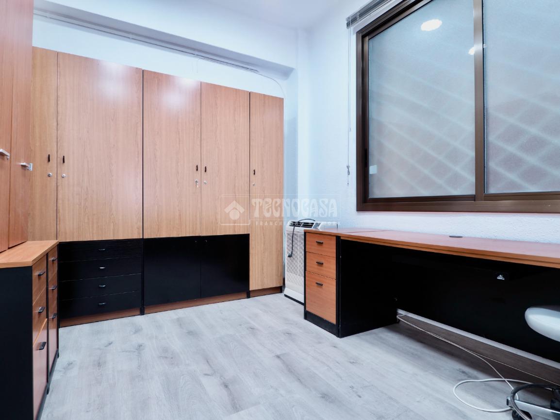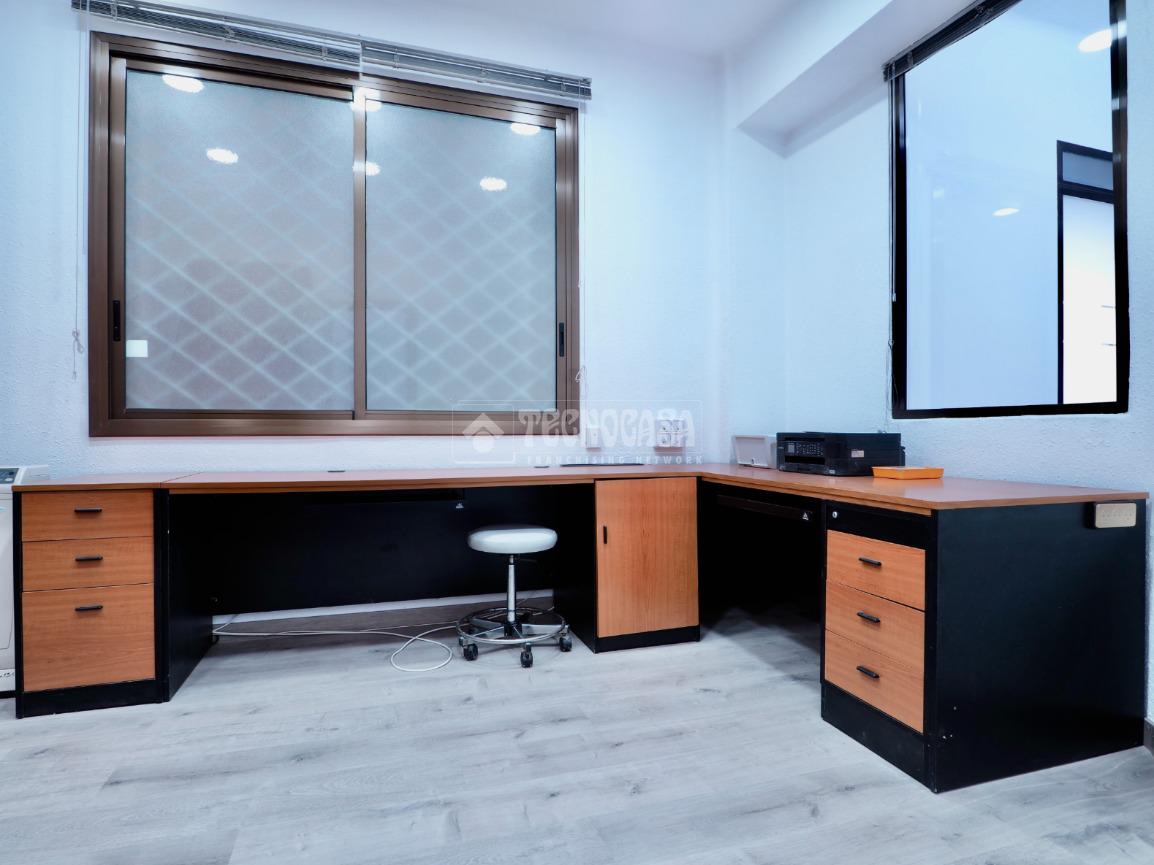 Despacho compuesto por recibidor, baño con ducha, trastero, sala principal muy grande y 3 amplios despachos, equipado con aire acondicionado y calefacción, orientado a Oeste con mucha luz natural y muy tranquilo ya que da a patio de manzana amplio. Edificio de oficinas con servicio de portería, 2 ascensores + montacargas, y edificio adaptado para personas con movilidad reducida. Ideal para cualquier tipo de consulta medica, terapia o oficinas.